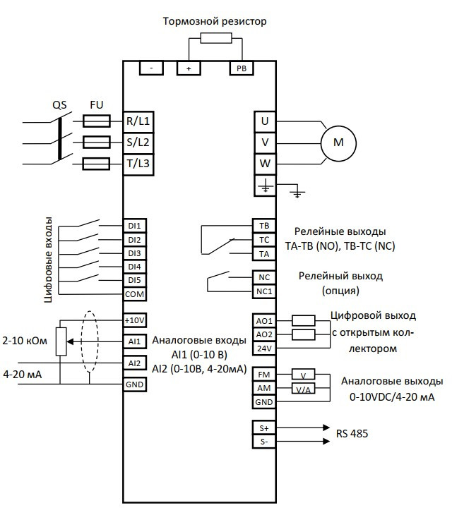 схема общая для всей линейки частотных преобразователей и может незначительно отличаться для данной модели