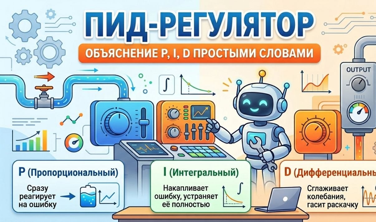 📌 Введение Попытка просто сказать о сложном и объяснить принцип работы ПИД-регулятора простыми словами. В статье разберем, как работает ПИД-регулятор,